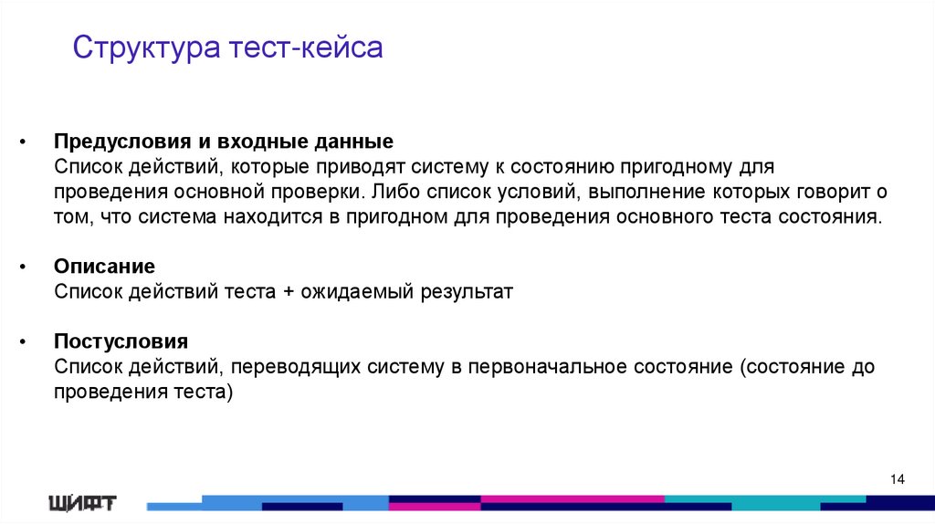 Структура тест-кейсаПредусловия и входные данные
