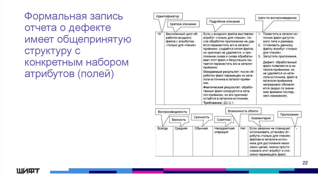 Формальная записьотчета о дефекте
