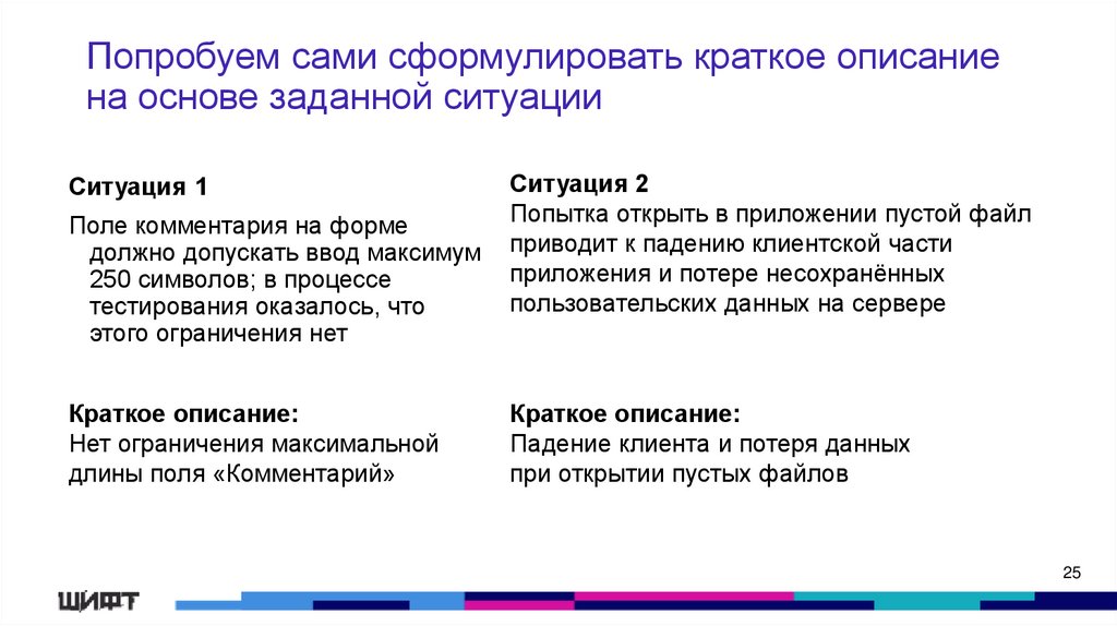 Попробуем сами сформулировать краткое описаниена основе заданной ситуации
