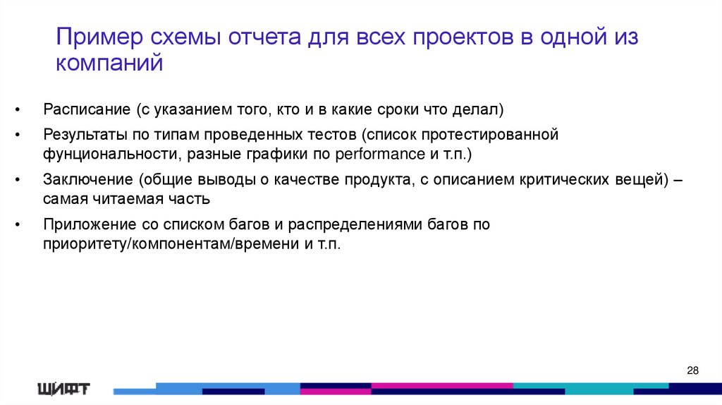 Пример схемы отчета для всех проектов в одной изкомпаний
