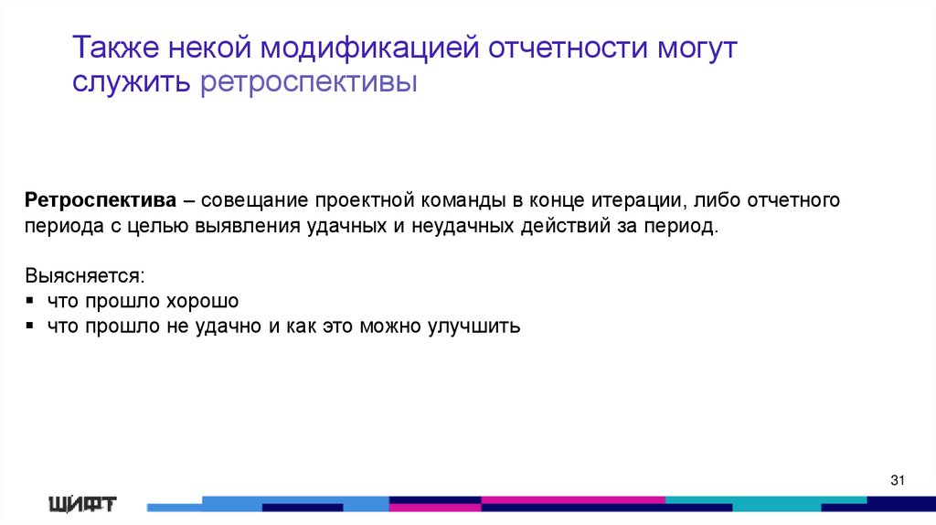 Также некой модификацией отчетности могутслужить ретроспективы