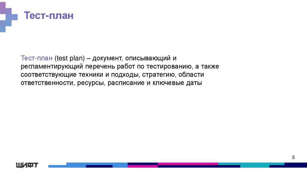 Тест-планТест-план (test plan) – документ, описывающий и