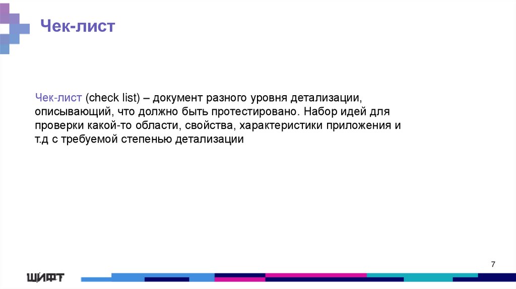 Чек-листЧек-лист (сheck list) – документ разного уровня детализации,