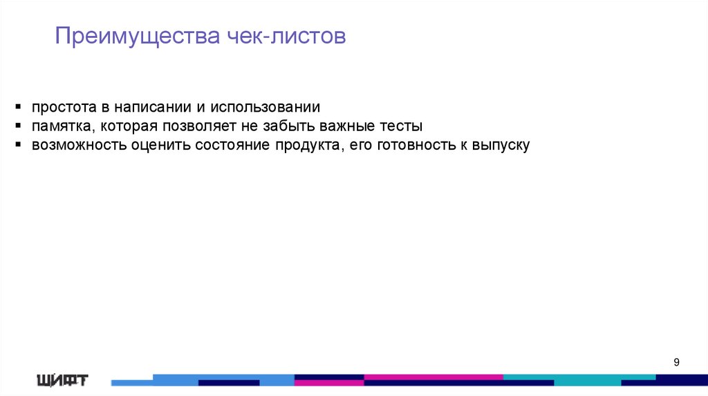 Преимущества чек-листовпростота в написании и использовании
