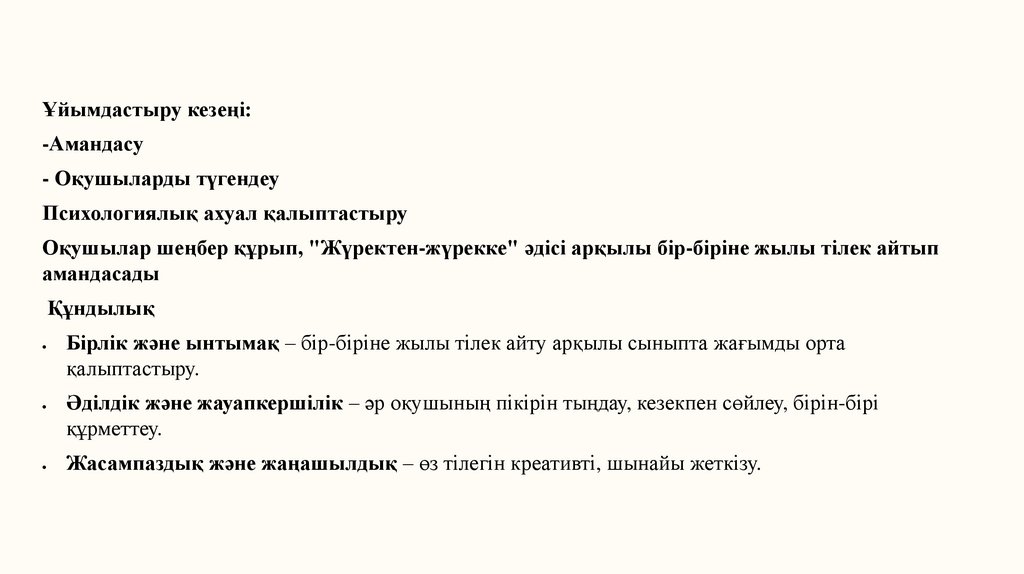 Бірлік және ынтымақ – бір-біріне жылы тілек айту арқылы сыныпта жағымды орта