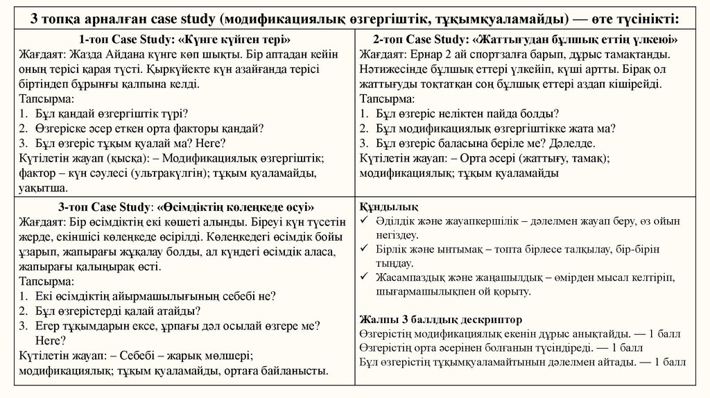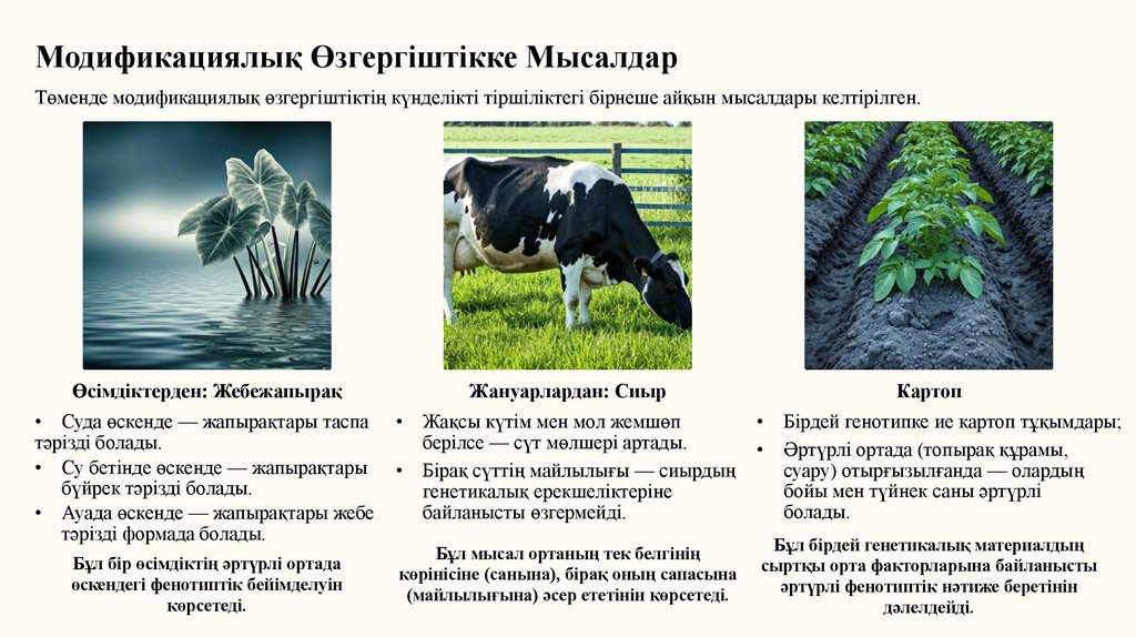 Өзгерістің орта әсерінен болғанын түсіндіреді. — 1 балл