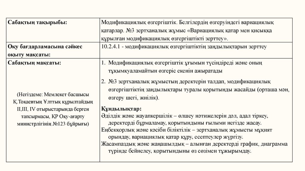 Жұптық жұмысТақырып: Вариациялық қатар мен қисық арқылы модификациялық өзгергіштікті