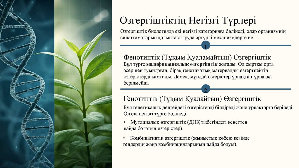Өзгергіштіктің Негізгі ТүрлеріӨзгергіштік биологияда екі негізгі категорияға бөлінеді, олар организмнің