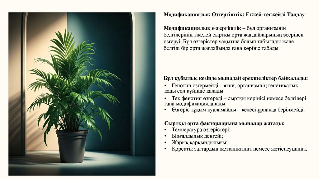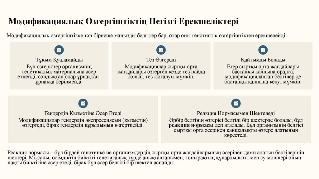 • Генотип өзгермейді – яғни, организмнің генетикалық