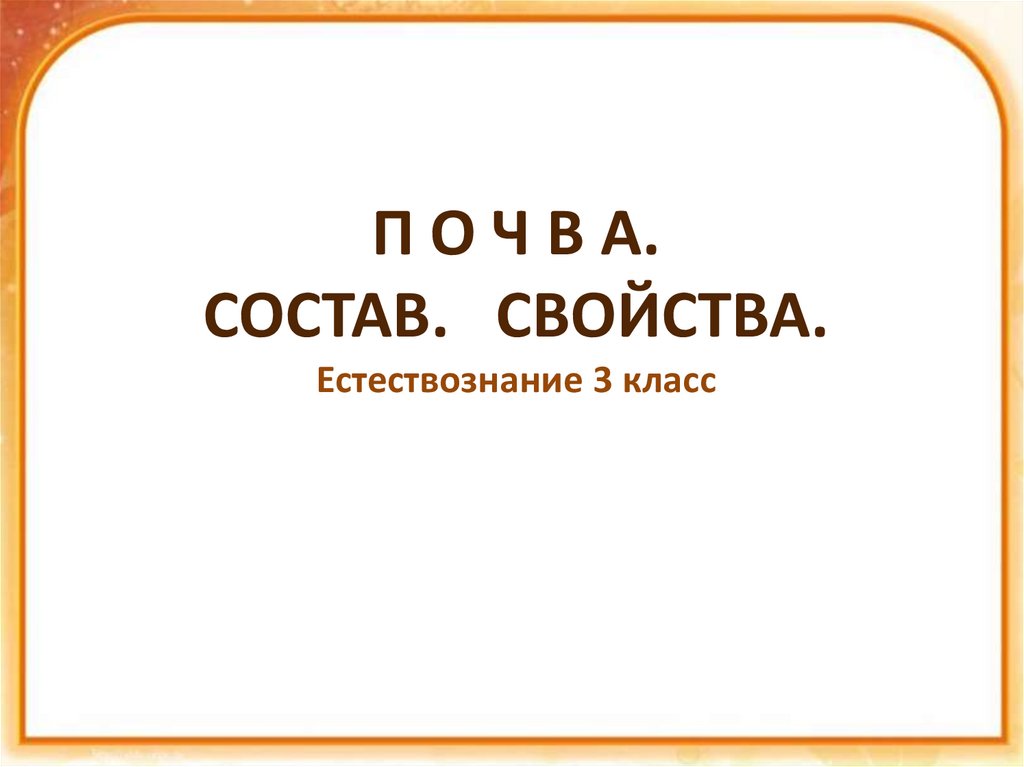 П О Ч В А.СОСТАВ. СВОЙСТВА.