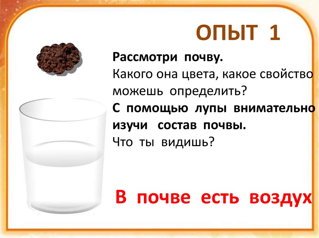 ОПЫТ 1Рассмотри почву.