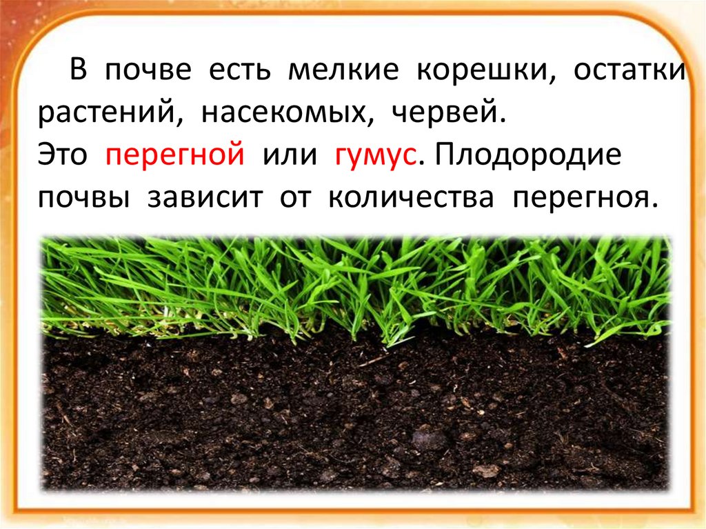 В почве есть мелкие корешки, остаткирастений, насекомых, червей.