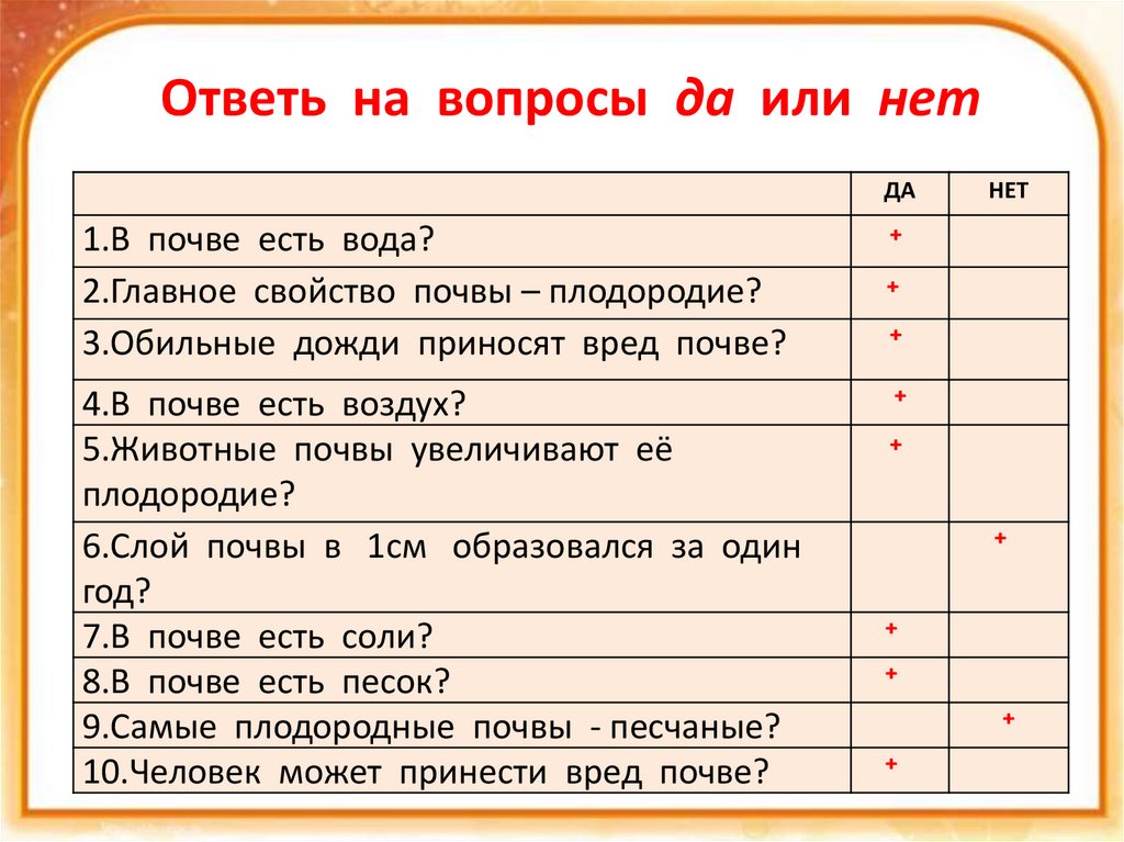 Ответь на вопросы да или нетДА