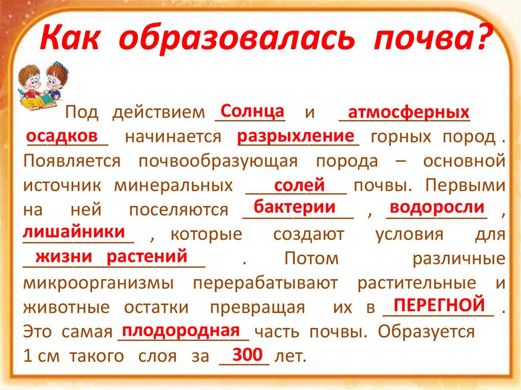 Как образовалась почва?Солнца и _____________