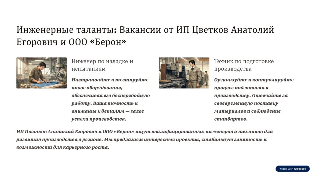 Инженерные таланты: Вакансии от ИП Цветков АнатолийЕгорович и ООО «Берон»