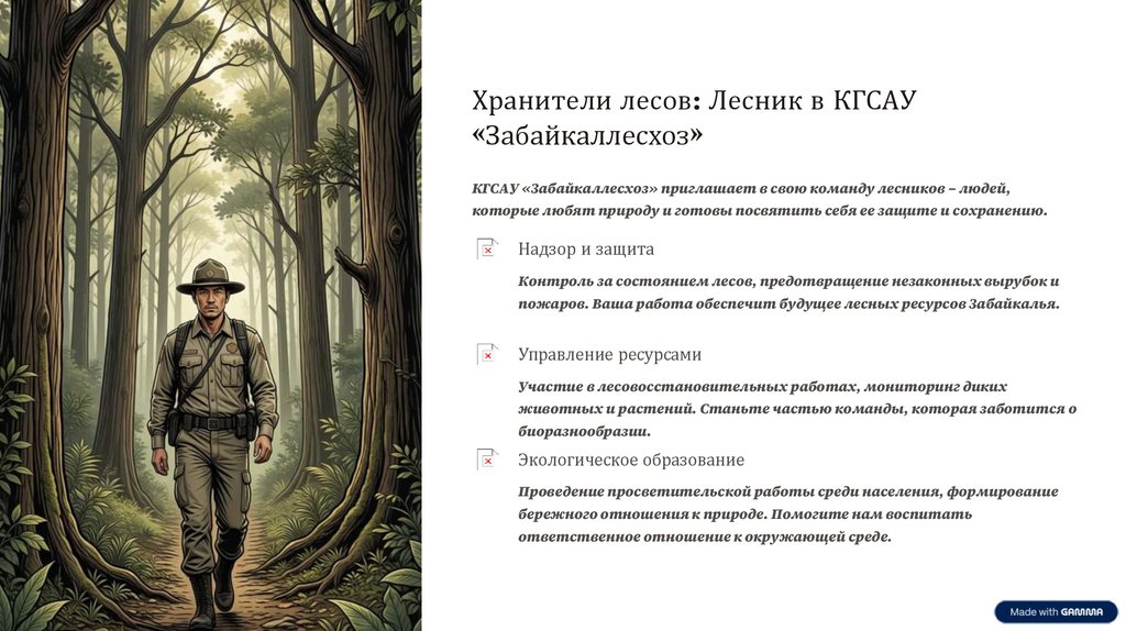 КГСАУ «Забайкаллесхоз» приглашает в свою команду лесников – людей,
