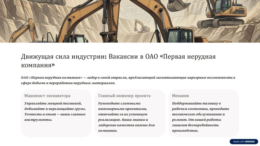 Движущая сила индустрии: Вакансии в ОАО «Первая неруднаякомпания»