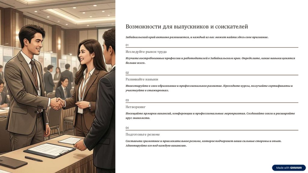 Возможности для выпускников и соискателейЗабайкальский край активно развивается, и каждый из вас может найти здесь свое призвание.
