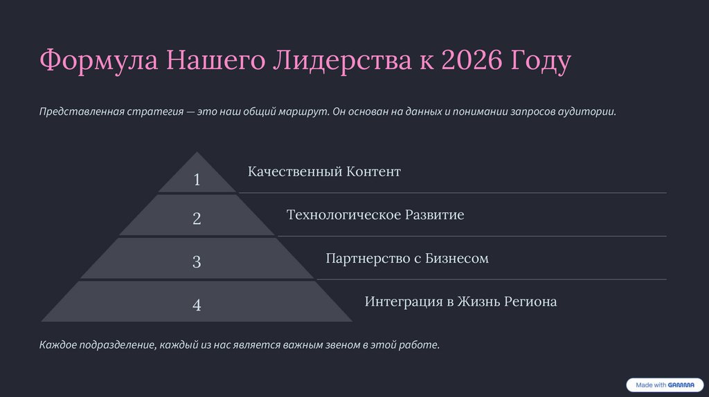 Формула Нашего Лидерства к 2026 ГодуПредставленная стратегия — это наш общий маршрут. Он основан на данных и понимании запросов аудитории.