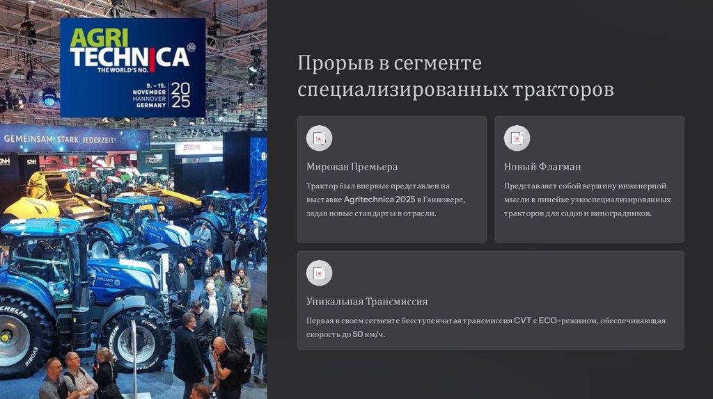 признание подтверждает лидерство New Holland в сегменте специализированных тракторов, благодаря инновациям, мощности