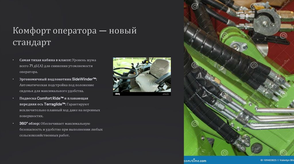 Мощная гидравлическая система обеспечивает эффективную работу с опрыскивателем и другими