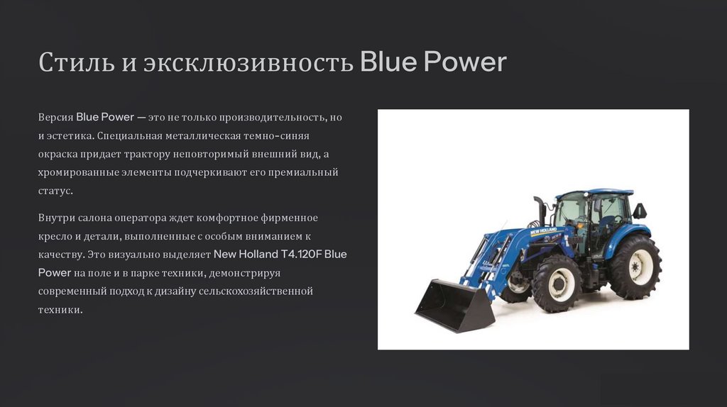 качеству. Это визуально выделяет New Holland T4.120F Blue