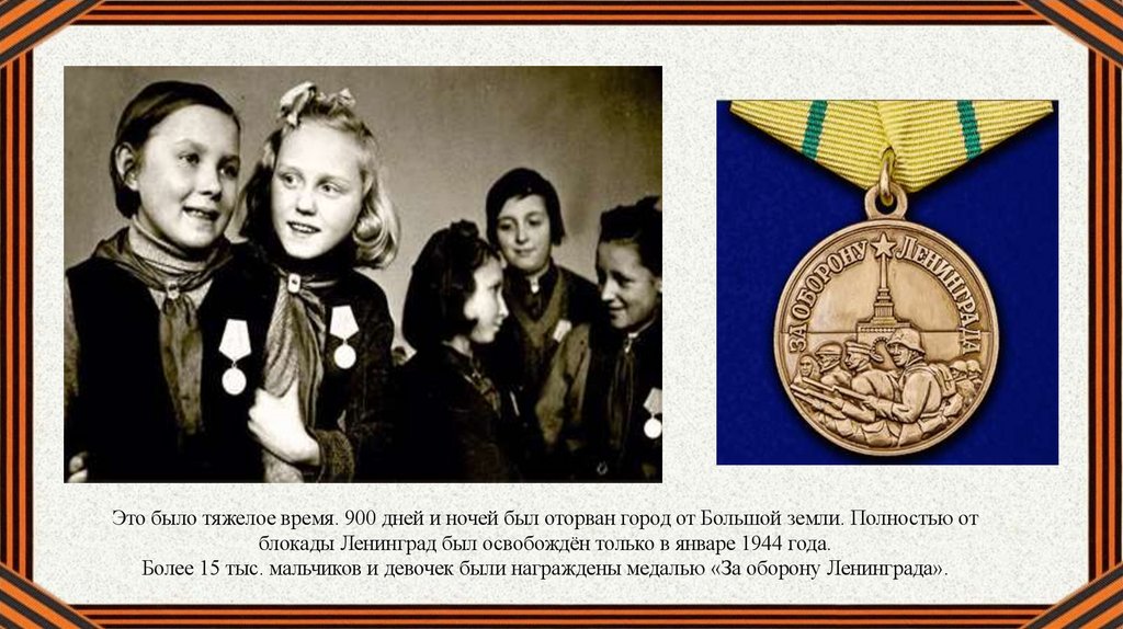 Более 15 тыс. мальчиков и девочек были награждены медалью «За оборону Ленинграда».