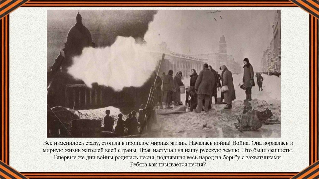 Впервые же дни войны родилась песня, поднявшая весь народ на борьбу с захватчиками.