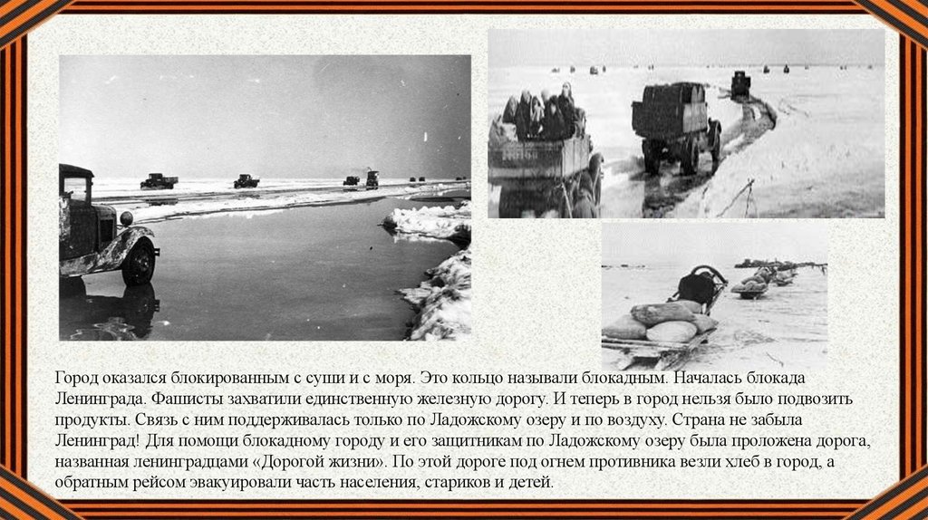 названная ленинградцами «Дорогой жизни». По этой дороге под огнем противника везли хлеб в город, а