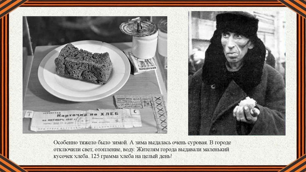 Особенно тяжело было зимой. А зима выдалась очень суровая. В городеотключили свет, отопление, воду. Жителям города выдавали маленький