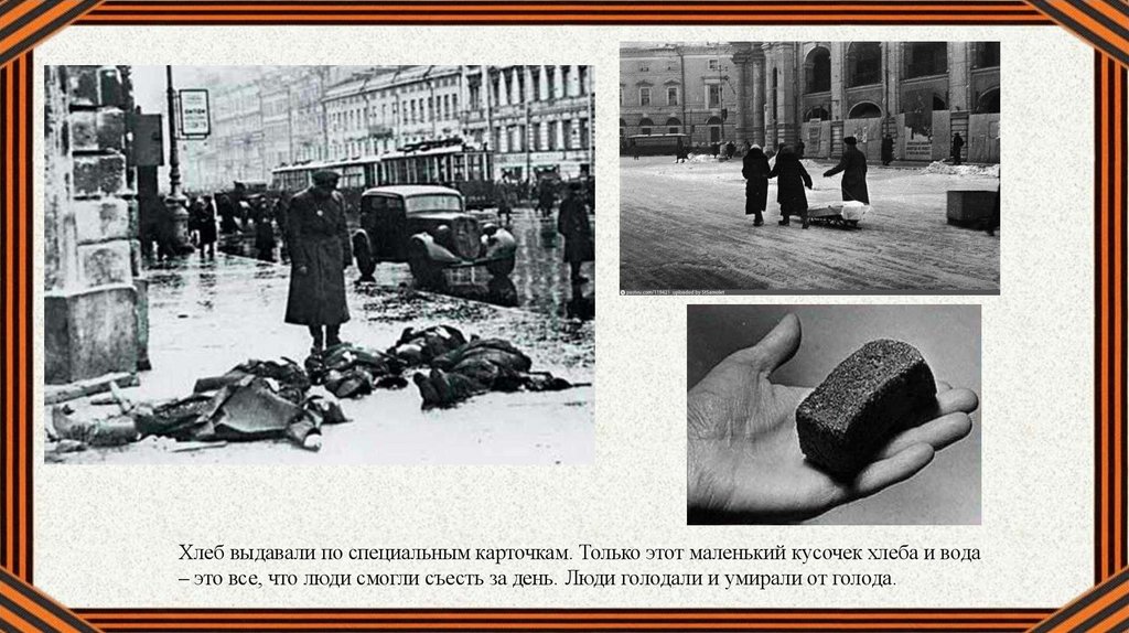 Хлеб выдавали по специальным карточкам. Только этот маленький кусочек хлеба и вода– это все, что люди смогли съесть за день. Люди голодали и умирали от голода.