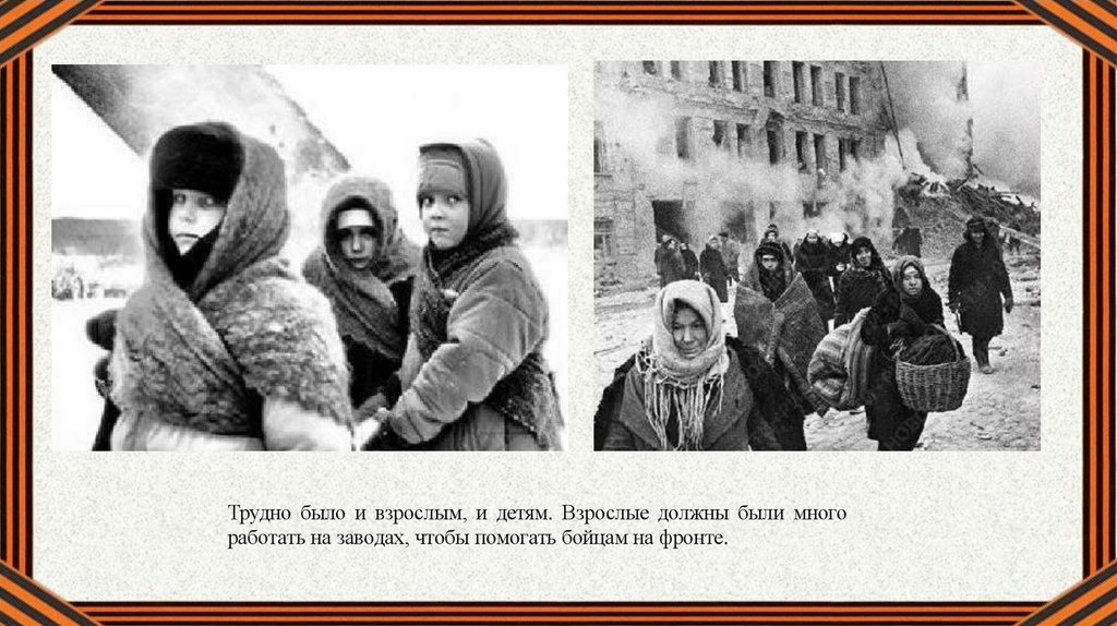 Трудно было и взрослым, и детям. Взрослые должны были многоработать на заводах, чтобы помогать бойцам на фронте.