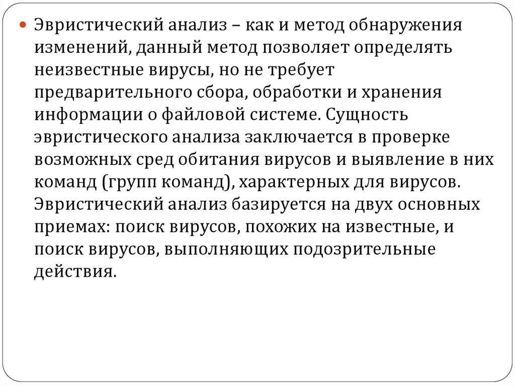 Эвристический анализ – как и метод обнаруженияизменений, данный метод позволяет определять