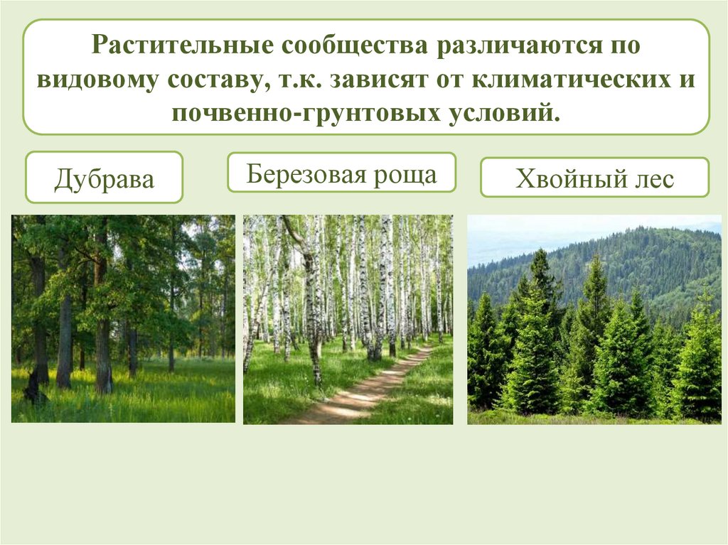 Растительные сообщества различаются повидовому составу, т.к. зависят от климатических и