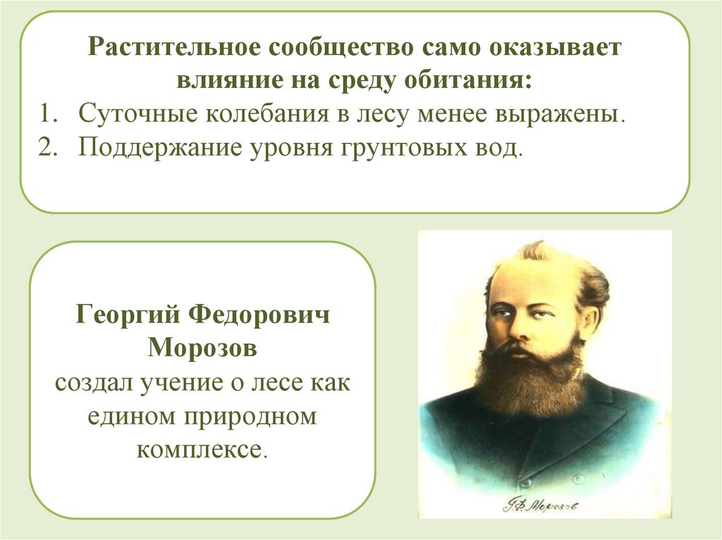 Растительное сообщество само оказываетвлияние на среду обитания: