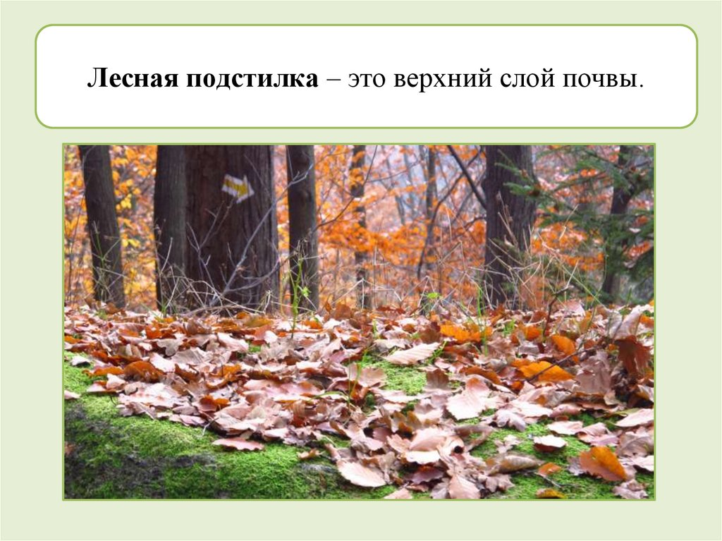 Лесная подстилка – это верхний слой почвы.10.