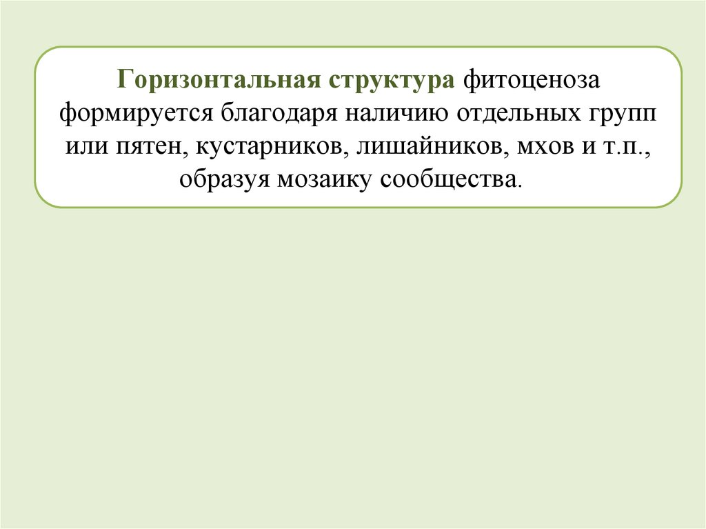 Горизонтальная структура фитоценозаформируется благодаря наличию отдельных групп