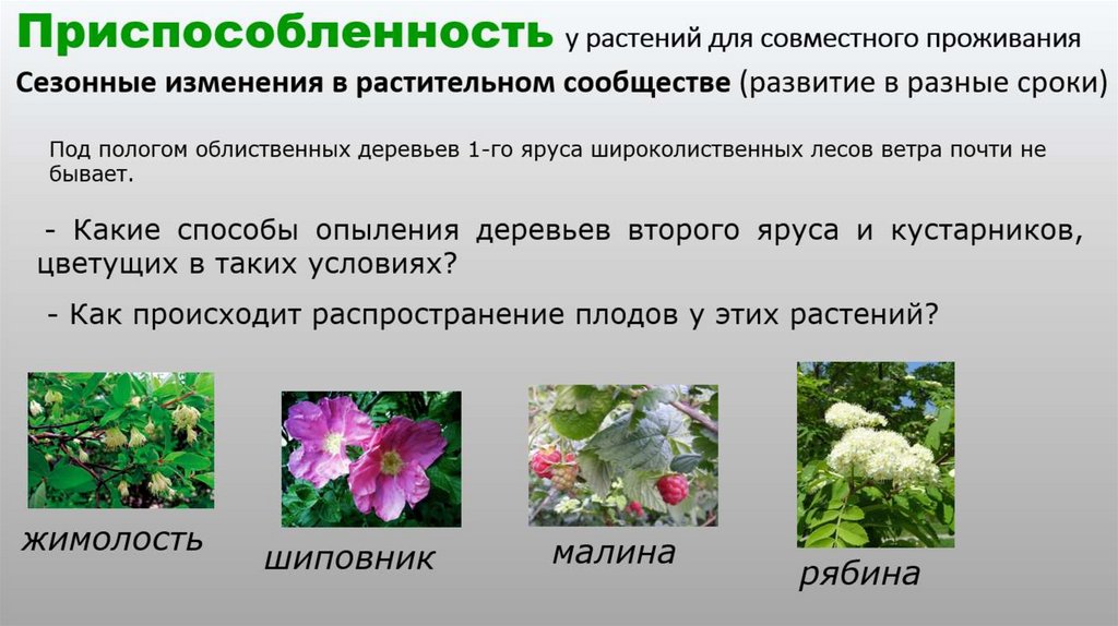 Приспособленность у растений для совместногопроживания