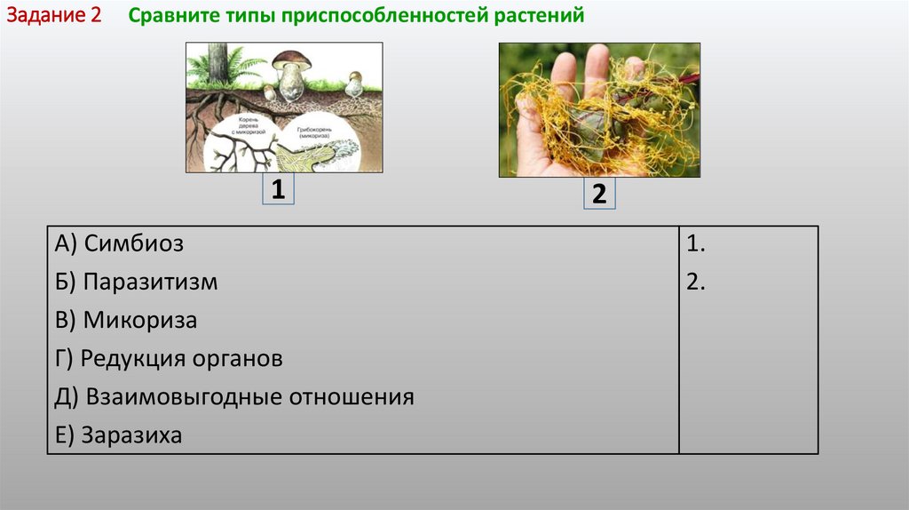 Задание 2Сравните типы приспособленностей растений