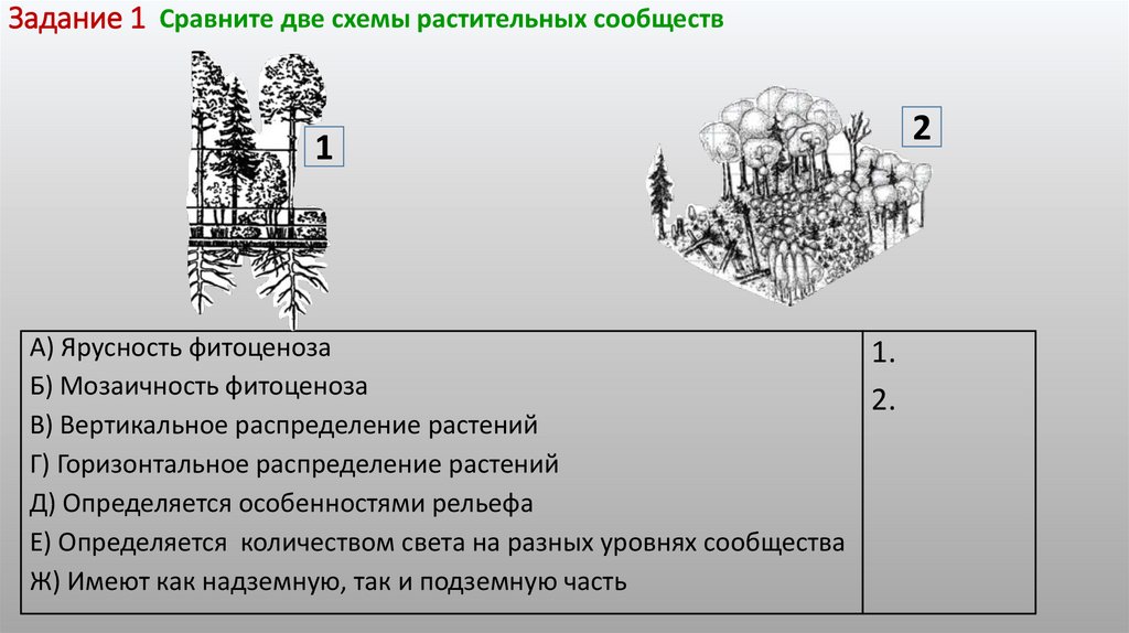 Задание 1 Сравните две схемы растительных сообществ1