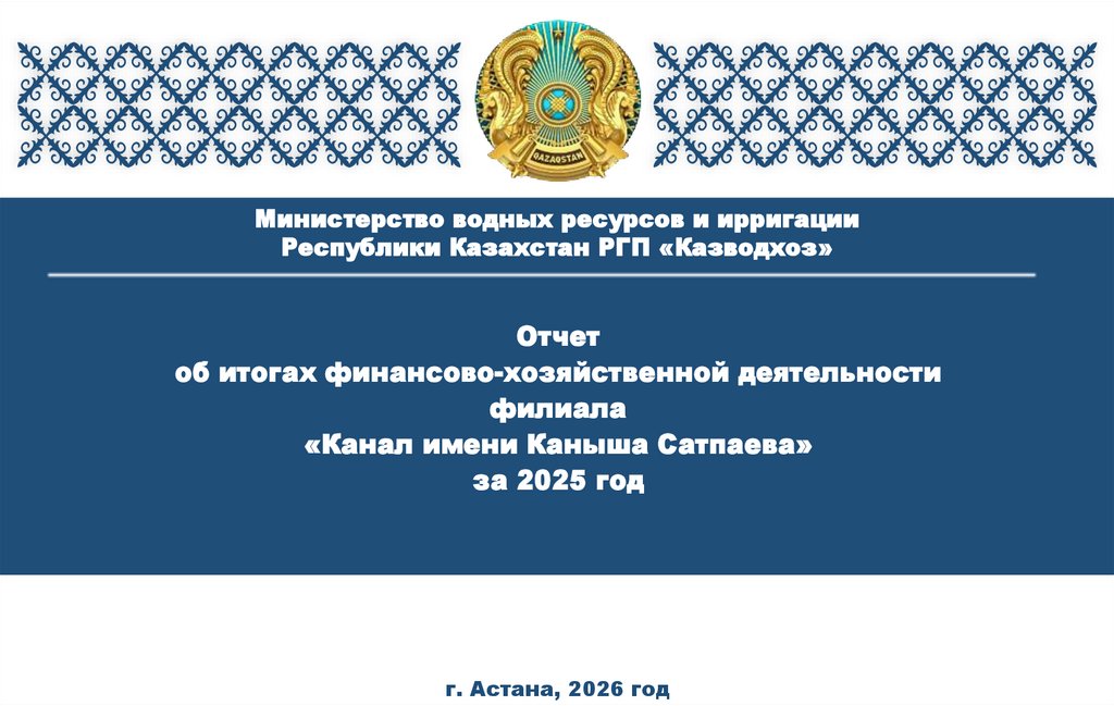 Министерство водных ресурсов и ирригацииРеспублики Казахстан РГП «Казводхоз»
