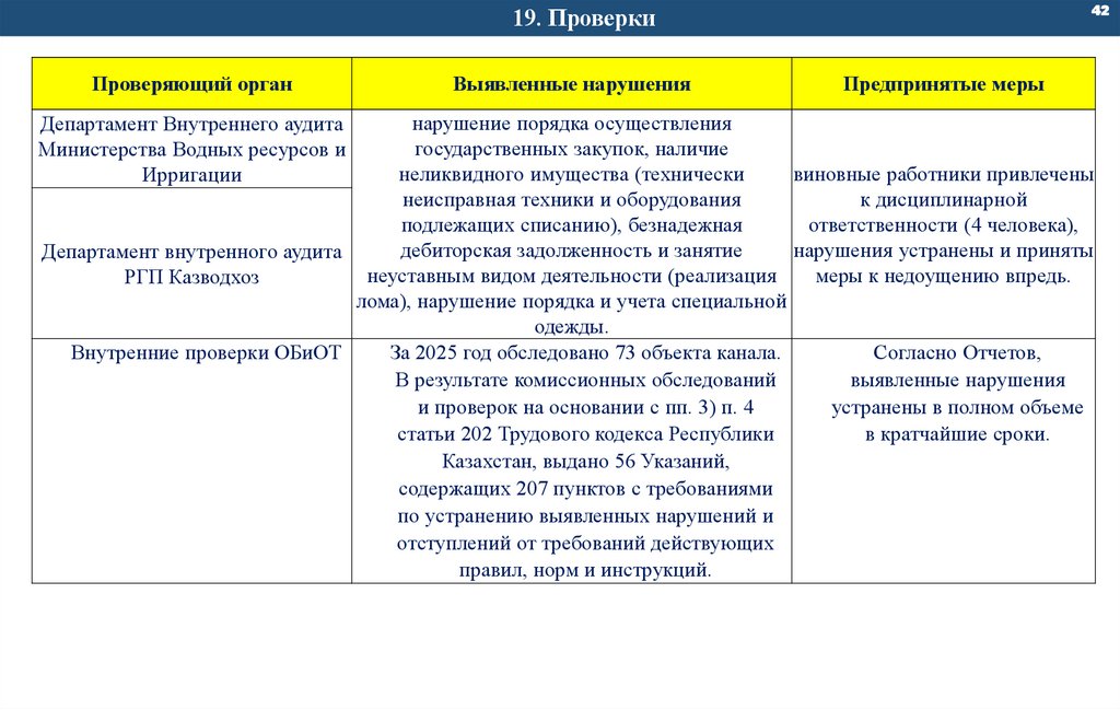 С РГП «Казводхоз» поступило 8 Протокольных поручении. Исполение протокольных поручении были
