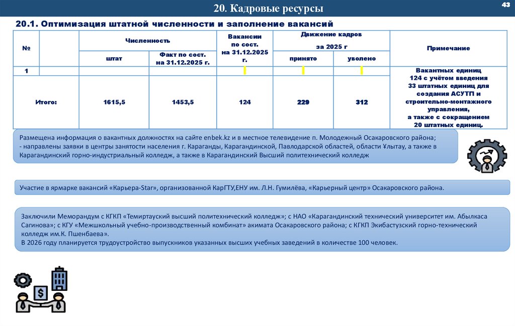 20.1. Оптимизация штатной численности и заполнение вакансий