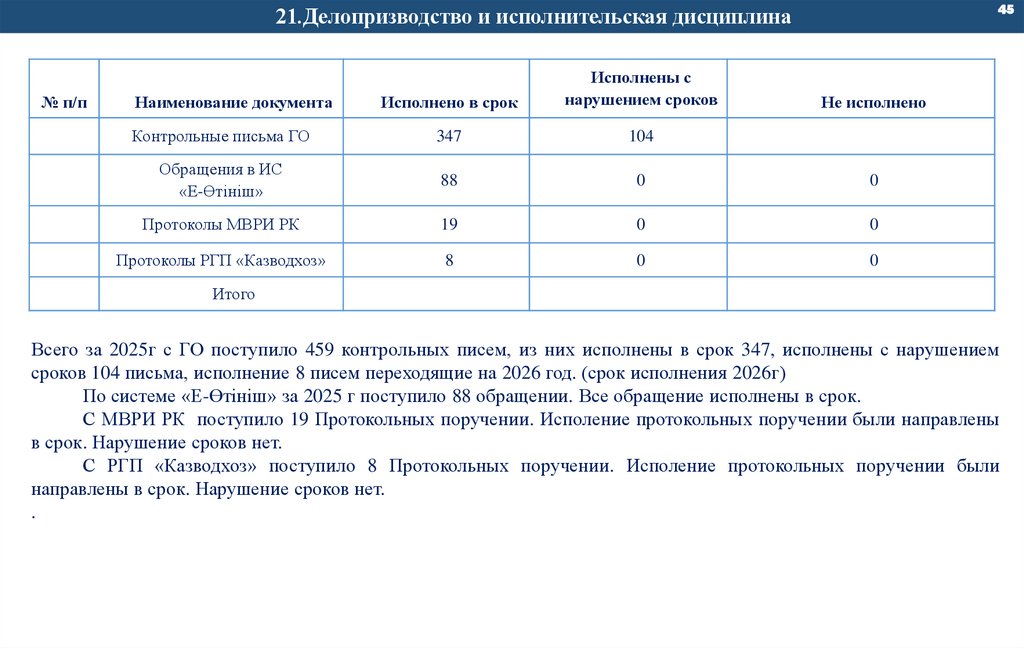 сроков 104 письма, исполнение 8 писем переходящие на 2026 год. (срок исполнения 2026г)