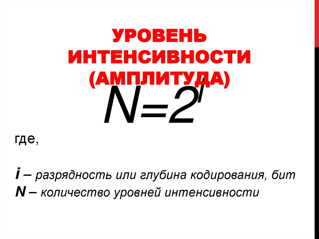 i – разрядность или глубина кодирования, бит