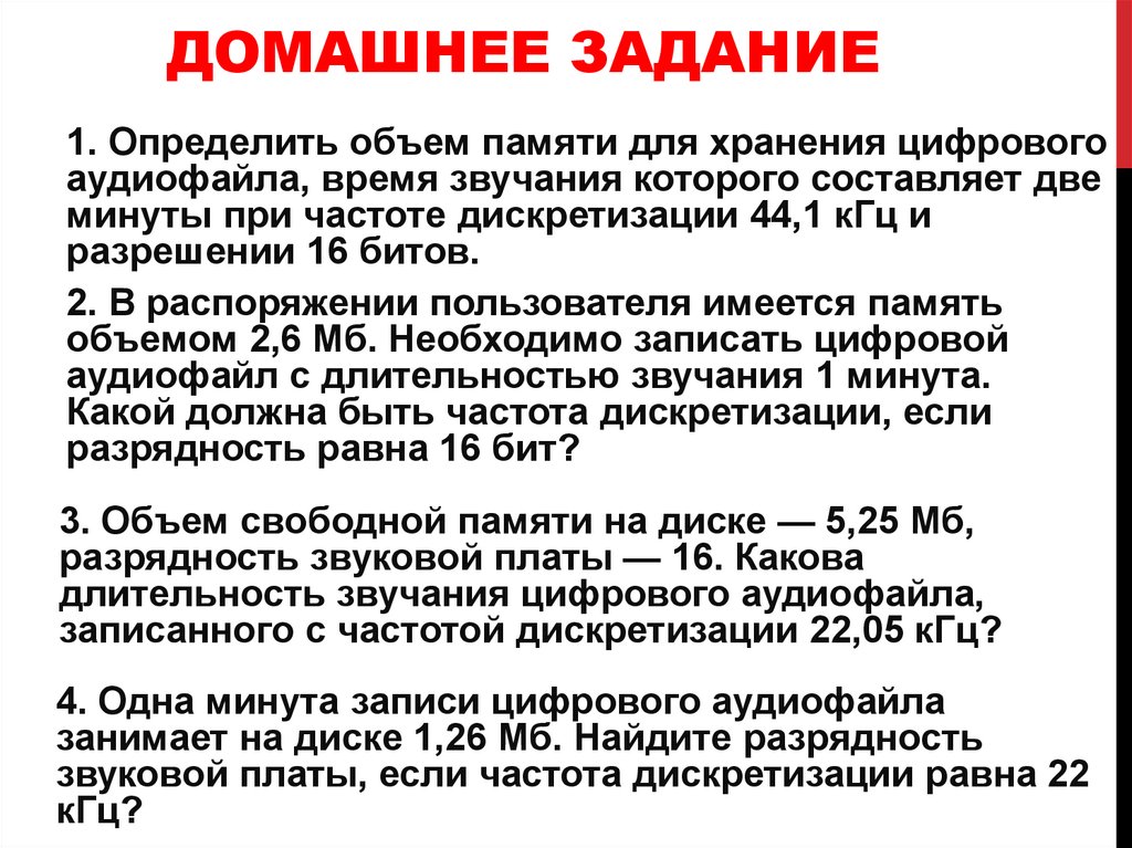 ДОМАШНЕЕ ЗАДАНИЕ1. Определить объем памяти для хранения цифрового