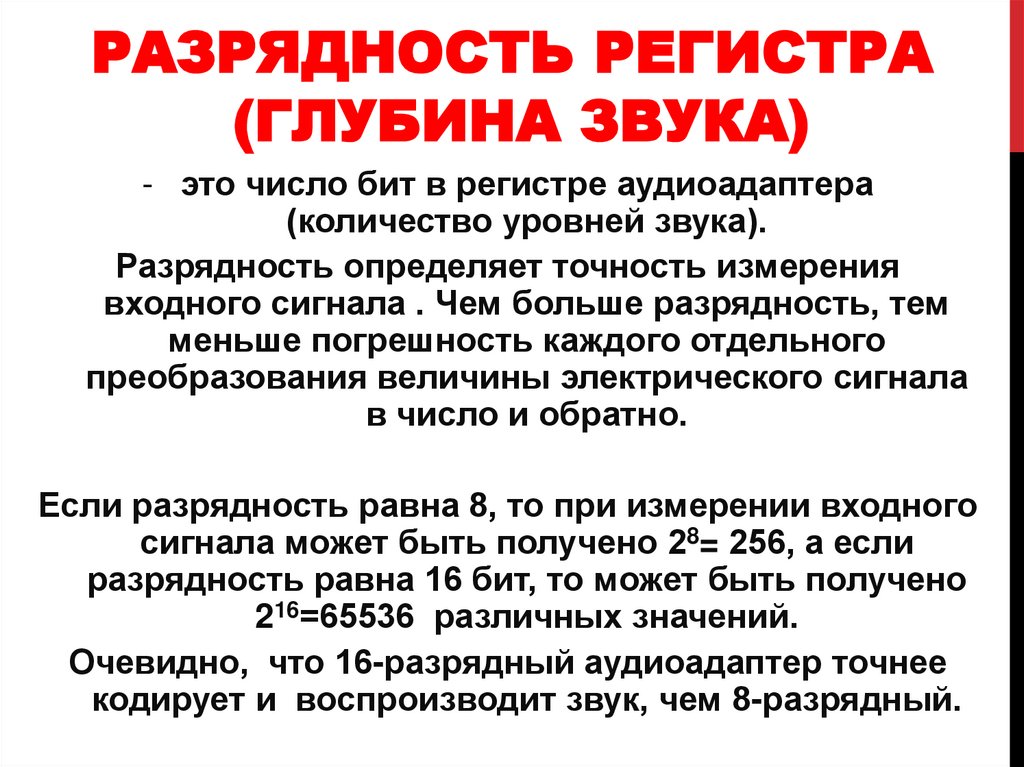 РАЗРЯДНОСТЬ РЕГИСТРА(ГЛУБИНА ЗВУКА)