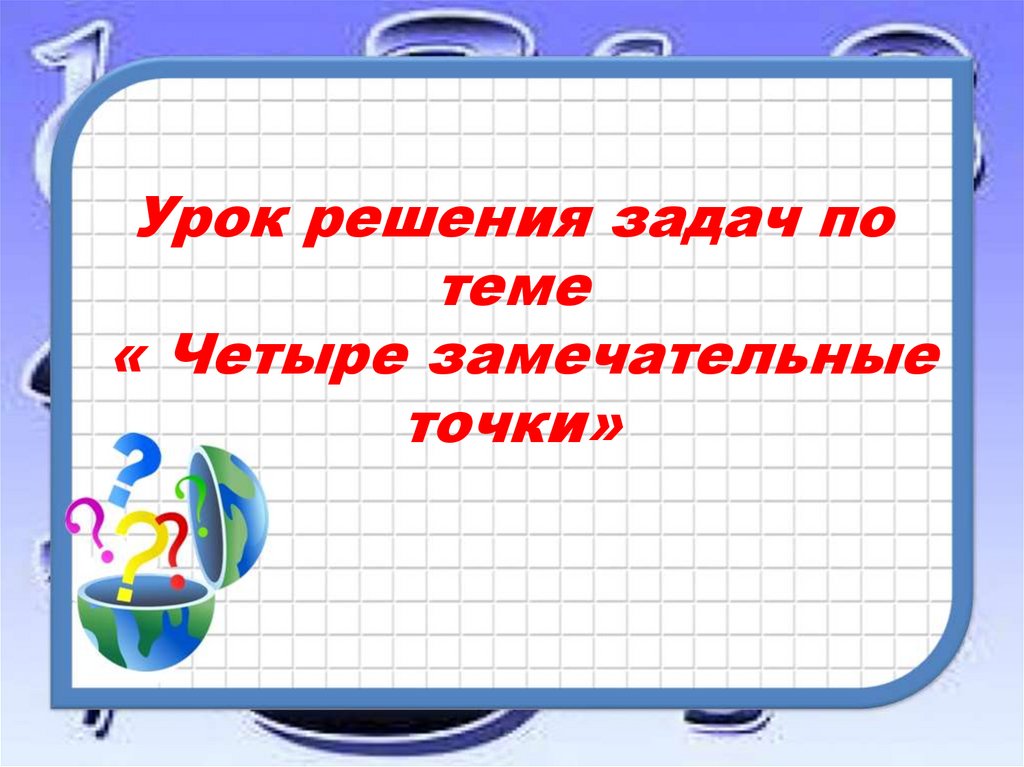 1. Урок решения задач по теме « Четыре замечательные точки»