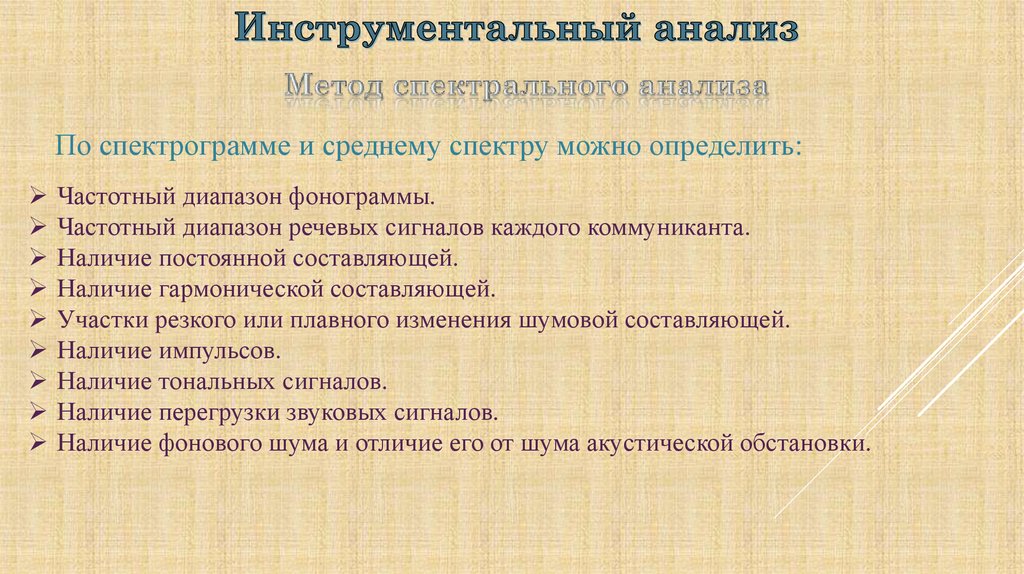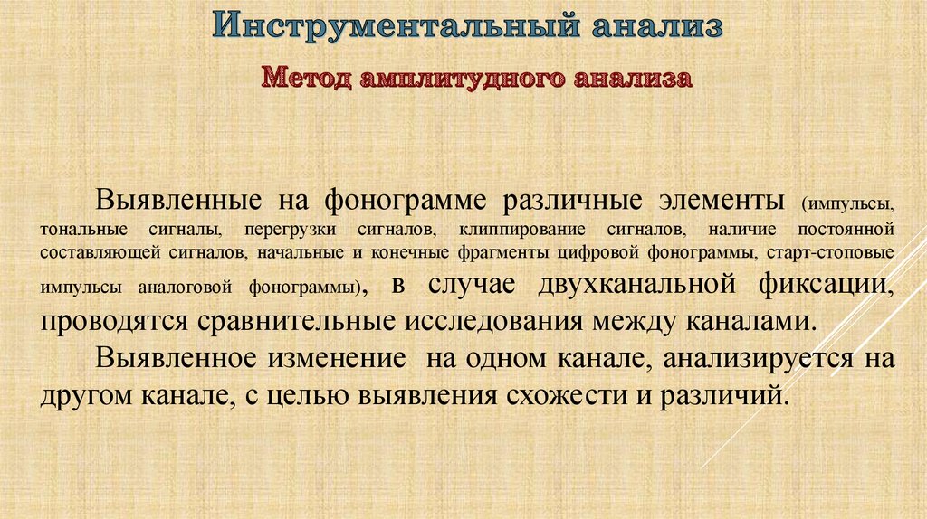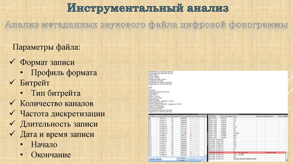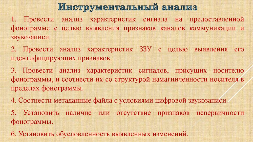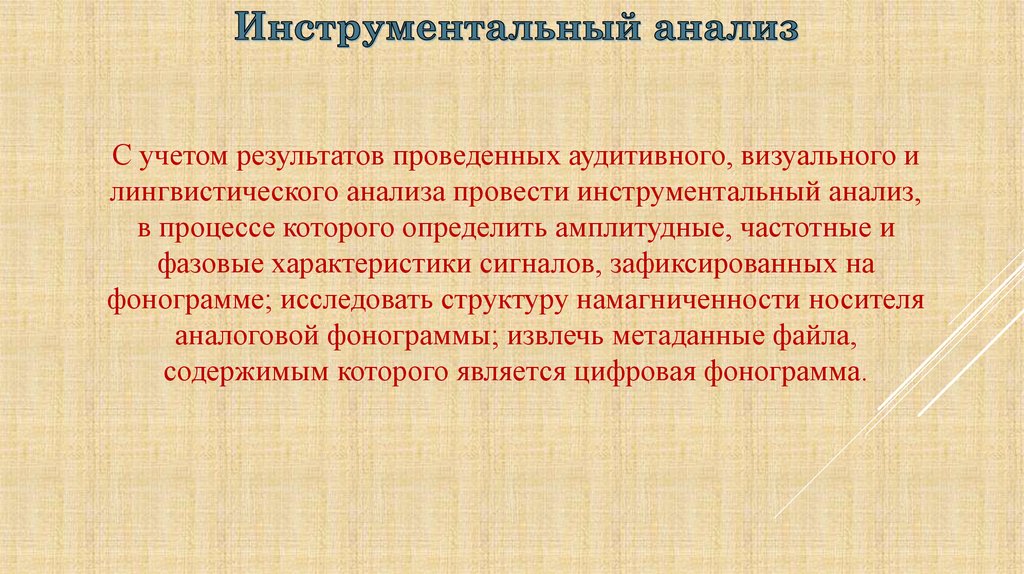 С учетом результатов проведенных аудитивного, визуального илингвистического анализа провести инструментальный анализ,