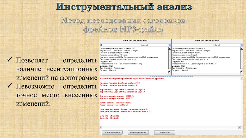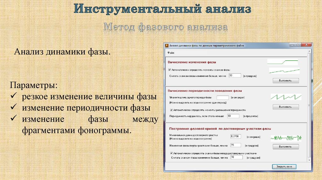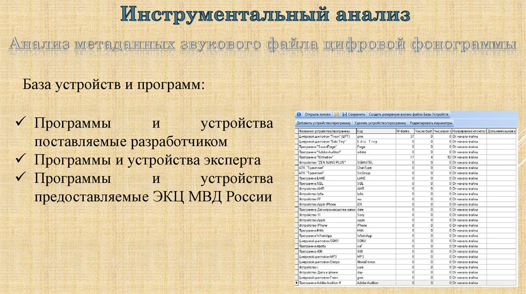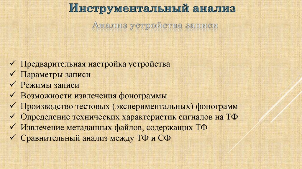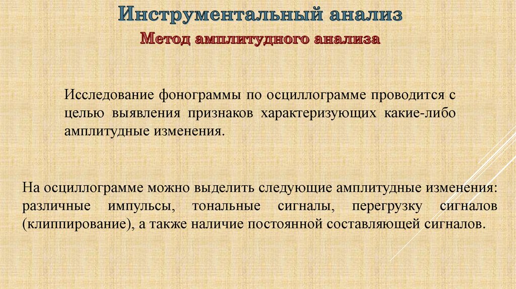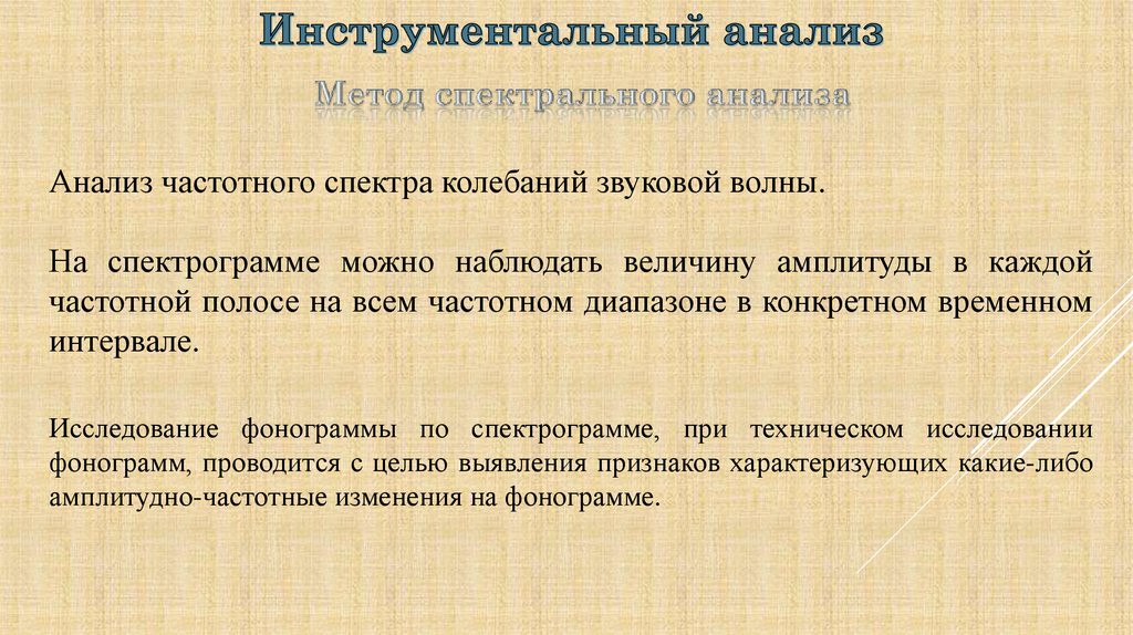 С учетом результатов проведенных аудитивного, визуального илингвистического анализа провести инструментальный анализ,